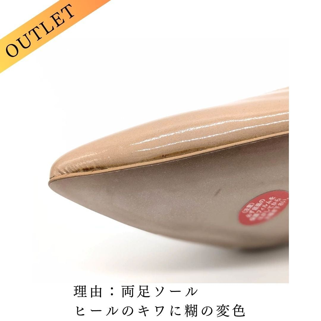 Outlet理由:①左足の靴底にシールの貼付跡が残っております。②両足ソール、ヒールのキワに糊の変色が見られます