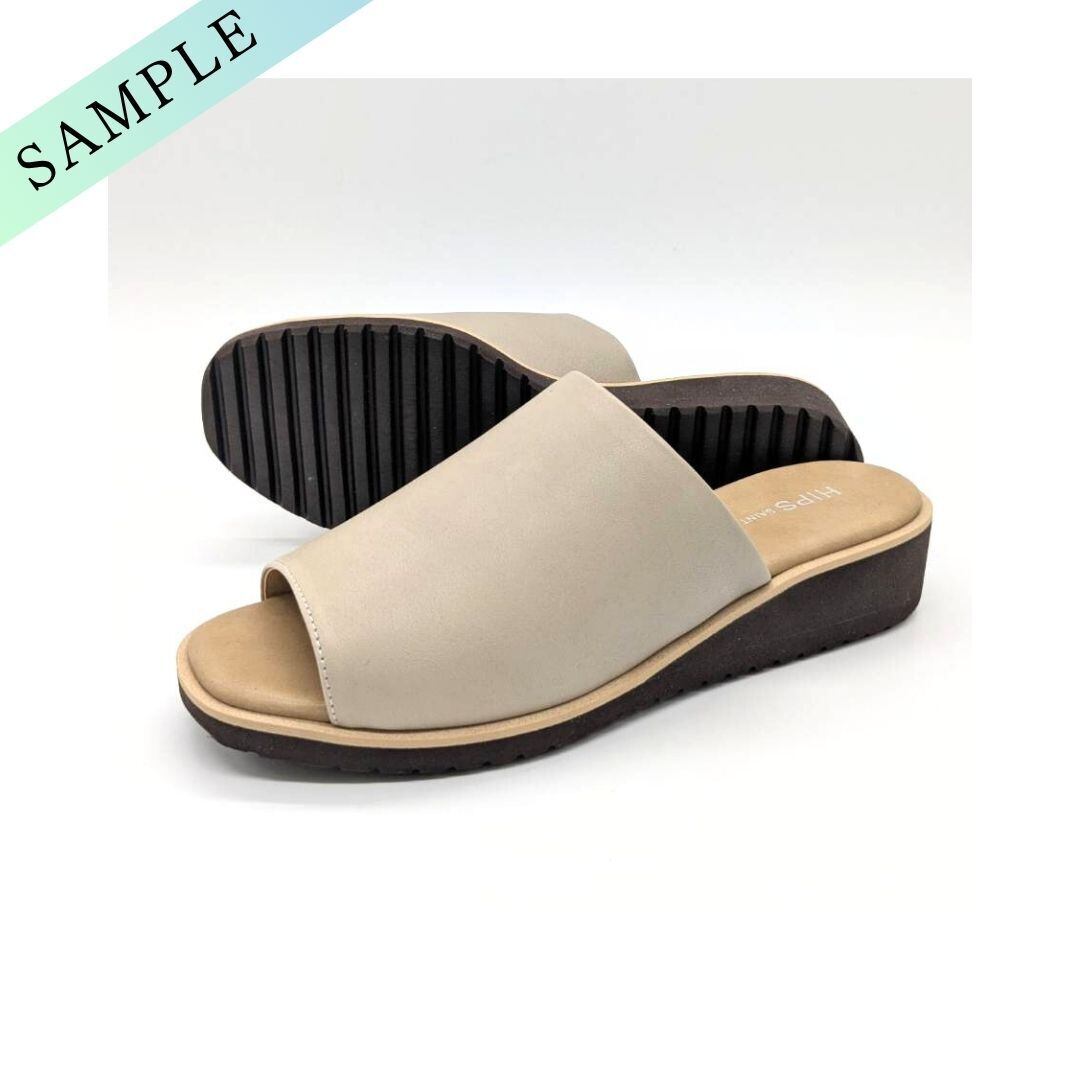 HIPSで人気のあるウエッジソールを使った新作ミュール。甲全体を覆う深めなアッパーで足入れがスムーズなのに脱げにくくて安心です。軽量かつちょうど良い高さのウエッジソールで快適な履き心地の1足です。