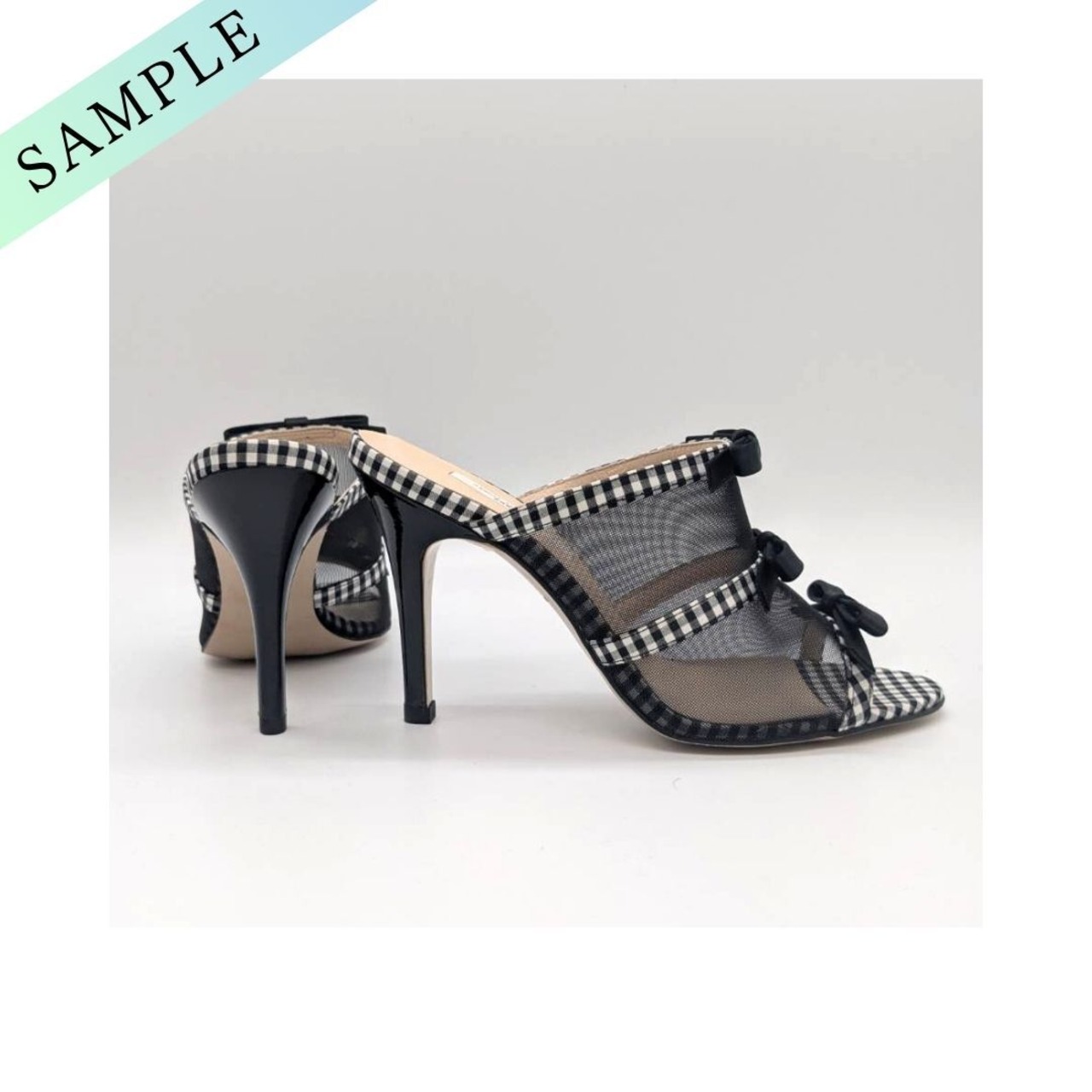 23.5cm/管理No.698/サンプル品/SEVEN TWELVE THIRTYセヴン トゥエルヴ サーティ リボン付きチュールミュール (ブラックコンビ)