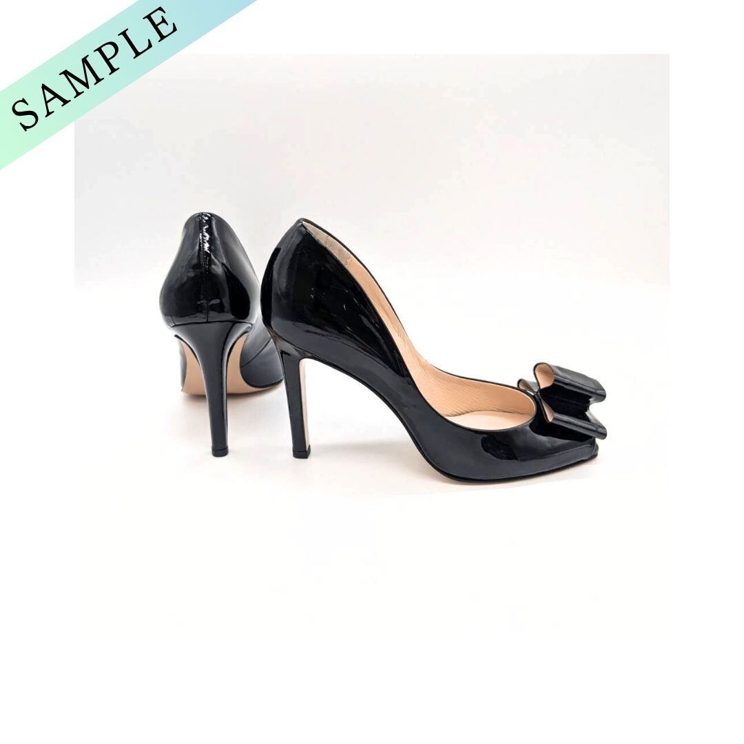 23.5cm/管理No.803/サンプル品(102536)/SEVEN TWELVE THIRTY/セヴン トゥエルヴ サーティ リボンオープントゥパンプス (ブラックエナメル)