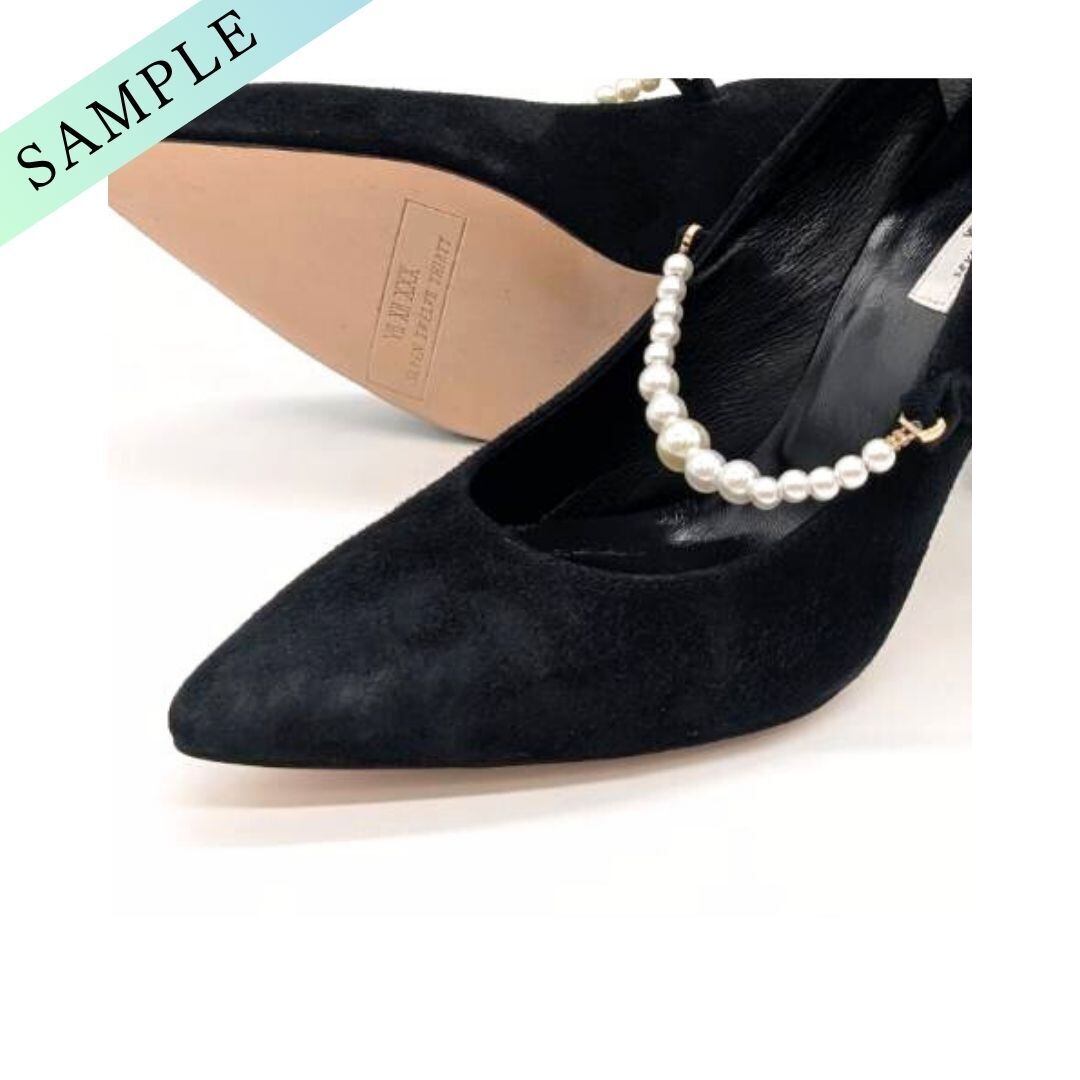 23.5cm/管理No.805/サンプル品(102538)/SEVEN TWELVE THIRTY/セヴン トゥエルヴ サーティ スティレットヒールパールストラップパンプス (ブラックスエード)