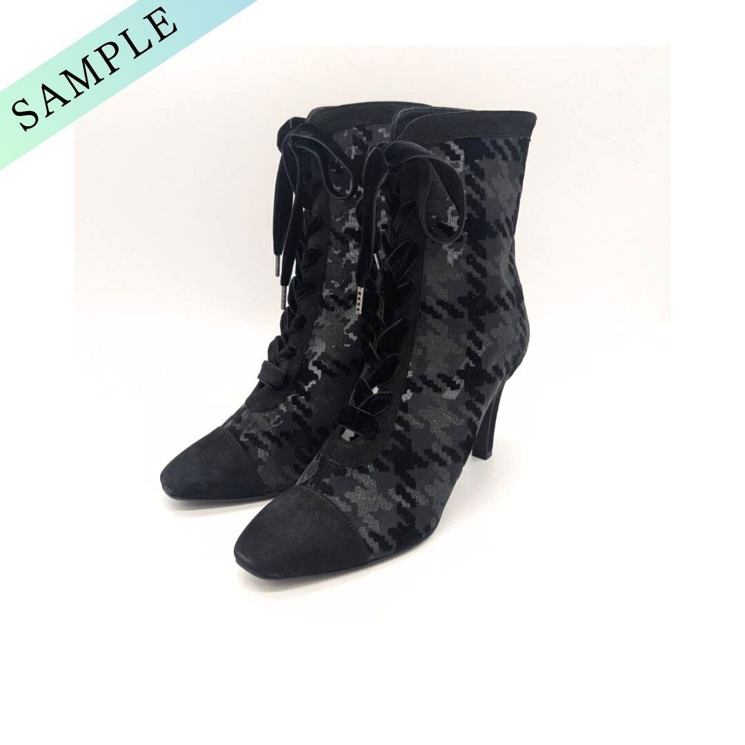 23.5cm/管理No.858/サンプル品/SEVEN TWELVE THIRTY/セヴン トゥエルヴ サーティ レースアップシアーショートブーツ(ブラックコンビ)