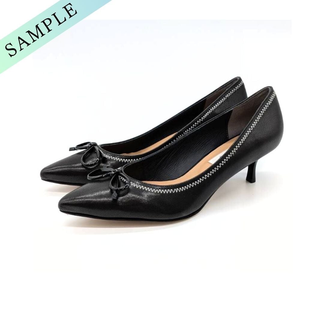 23.5cm/管理No.872/サンプル品(823019)/ALUNE SEVEN TWELVE THIRTY/アルネ セヴン トゥエルヴ サーティ スティレットローヒールリボンパンプス (ブラック)