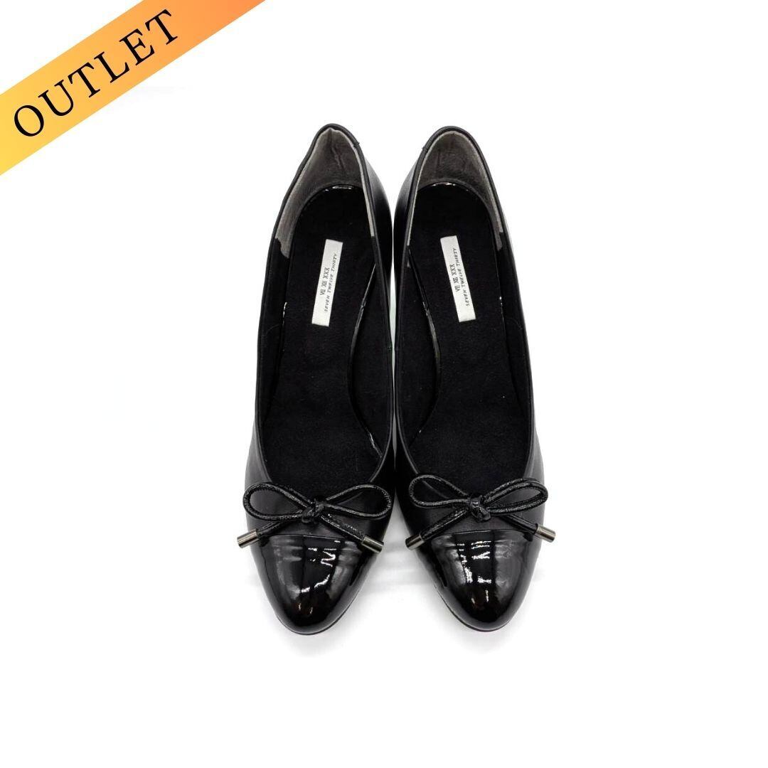 トゥ先とリボンのエナメルの艶感が足元のコーディネート引き締めてくれる効果も◎