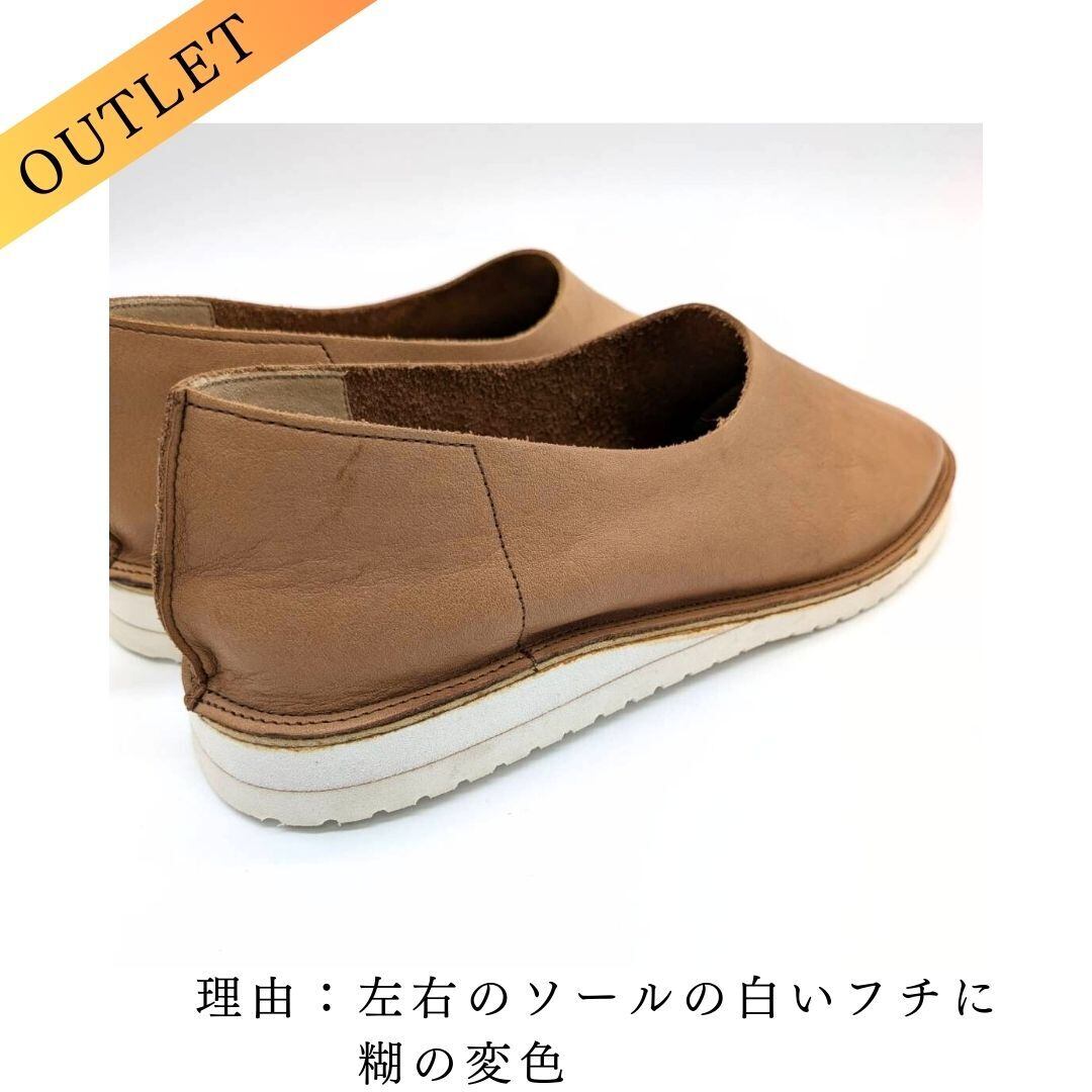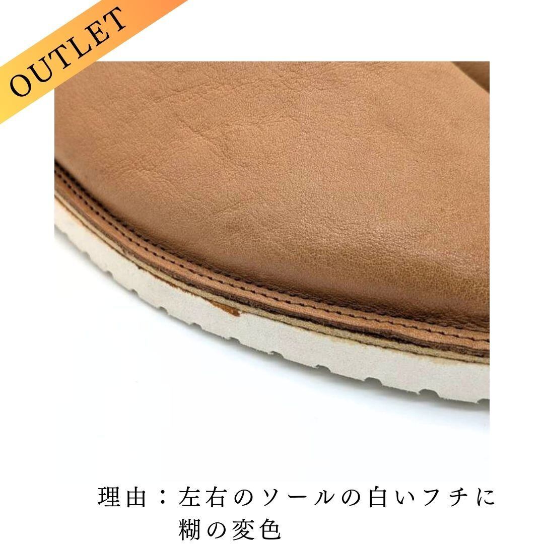 Outlet理由:①左足の甲革に、店頭照明の影響による色味の退色が見られます。 ②右足の甲部分に、ごく小さなキズがあります。 ③左右のソールの白いフチに、少し糊の変色が出ている部分があります。