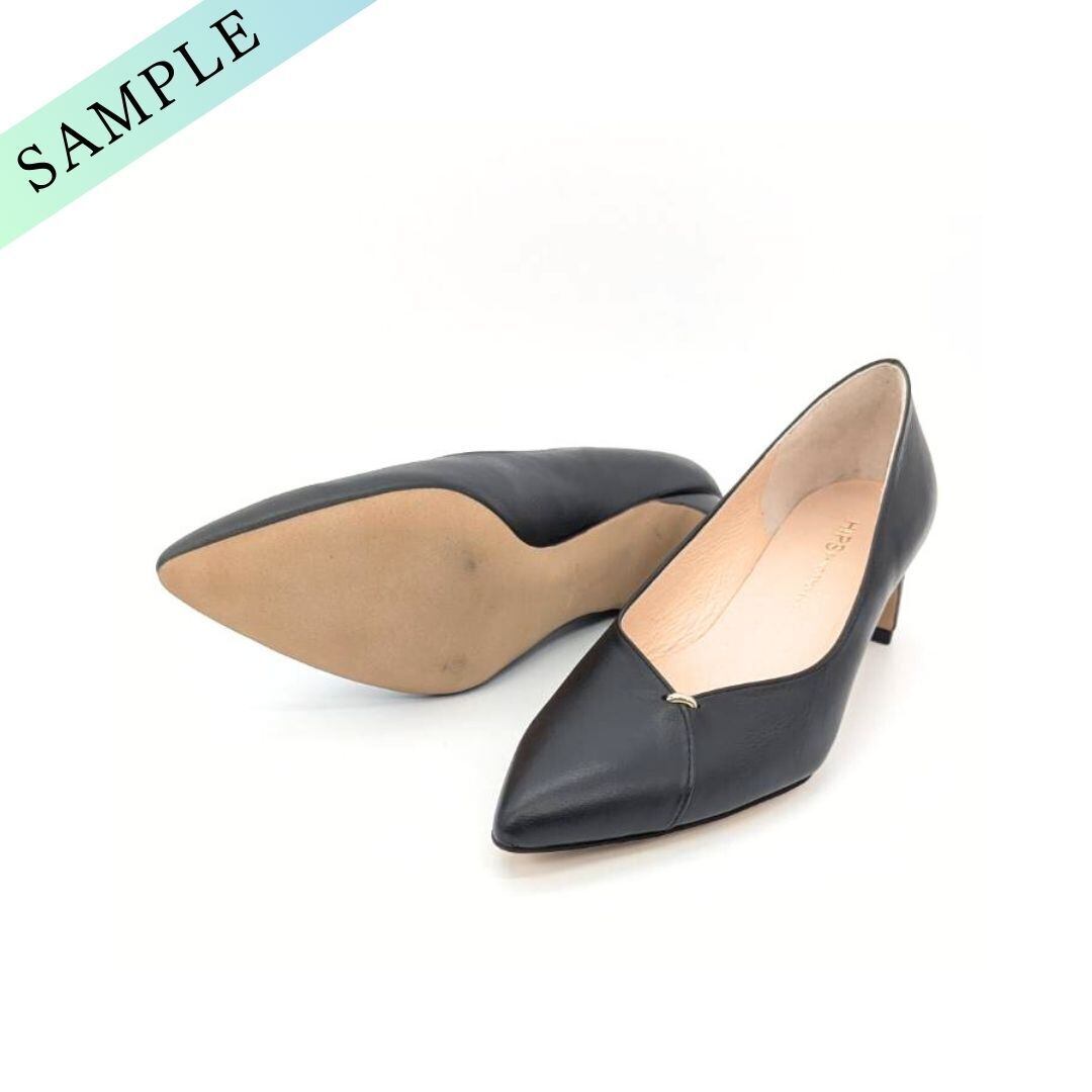 23.5cm/管理No.918/サンプル品(202003)/ヒップス HIPS 【本革】メタルパーツVカットパンプス (ブラック)