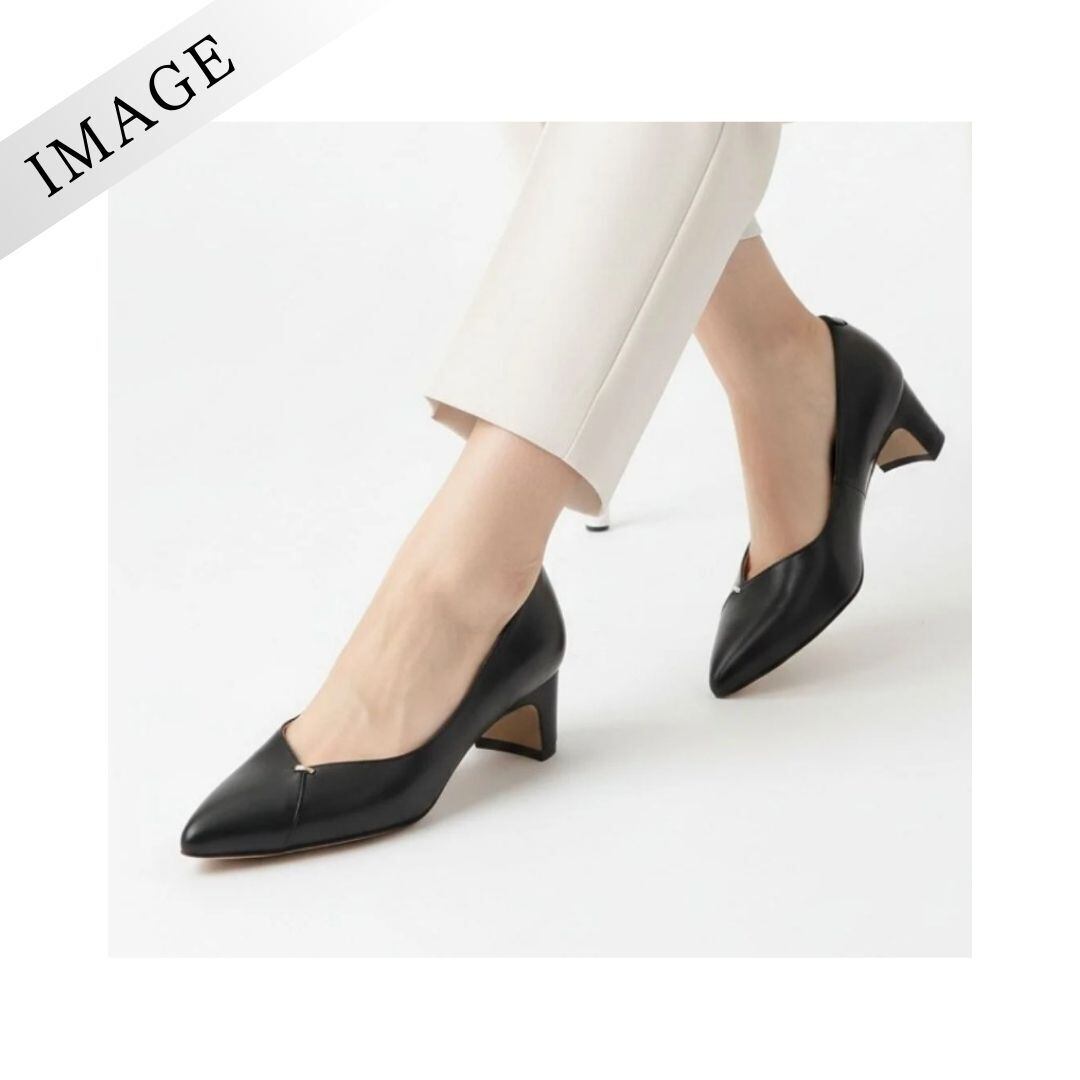 緩やかなVカットの履き口とポインテッドトゥが足元にシャープな印象を添える、ミニマルで洗練されたパンプス。フロントにあしらわれた小さなゴールドパーツが控えめながらも目を引くアクセントとなり、大人の余裕を感じさせる仕上がりで、シンプルながらもこなれ感のある足元を演出します。着回し力の高さも魅力のひとつで、日常からオフィスシーンまでタイムレスに活躍する一足です。