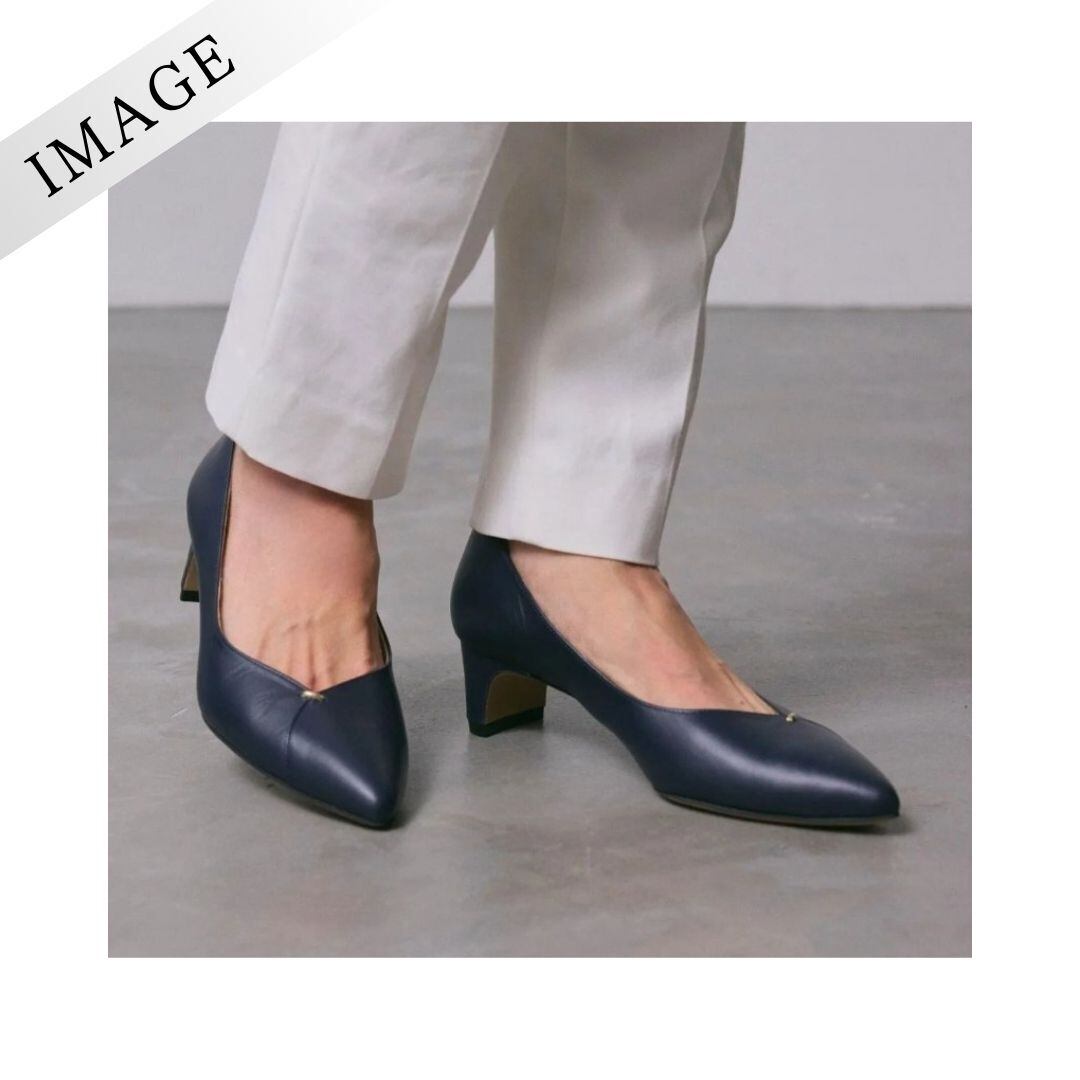 緩やかなVカットの履き口とポインテッドトゥが足元にシャープな印象を添える、ミニマルで洗練されたパンプス。フロントにあしらわれた小さなゴールドパーツが控えめながらも目を引くアクセントとなり、大人の余裕を感じさせる仕上がりで、シンプルながらもこなれ感のある足元を演出します。着回し力の高さも魅力のひとつで、日常からオフィスシーンまでタイムレスに活躍する一足です。
