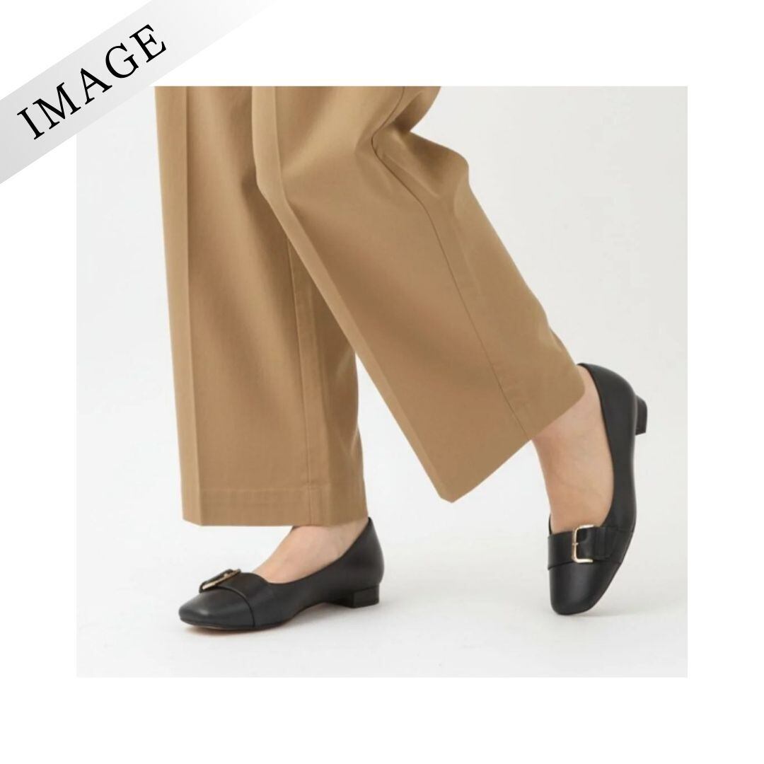 ベルトとスクエアトゥが印象的なモダンで落ち着いた雰囲気のフラットシューズ。