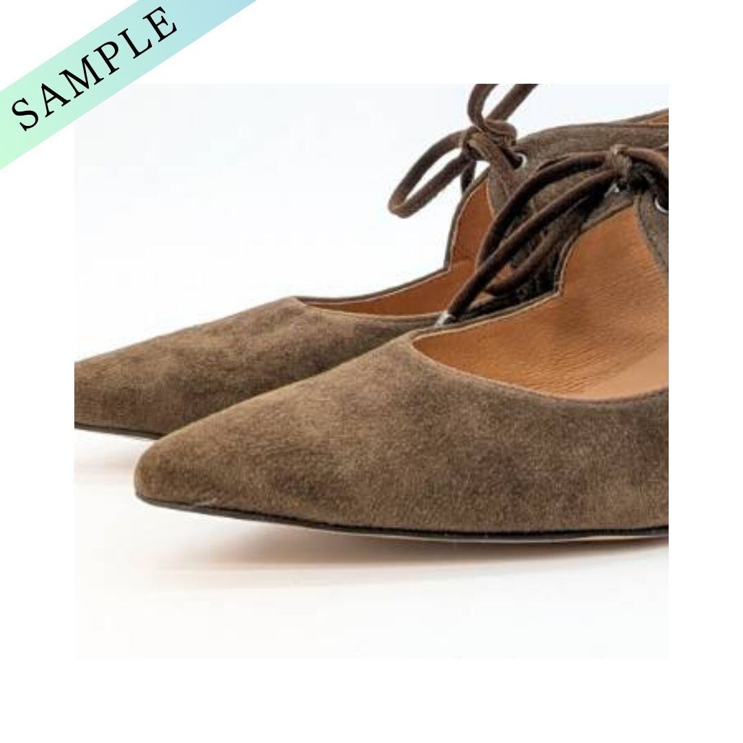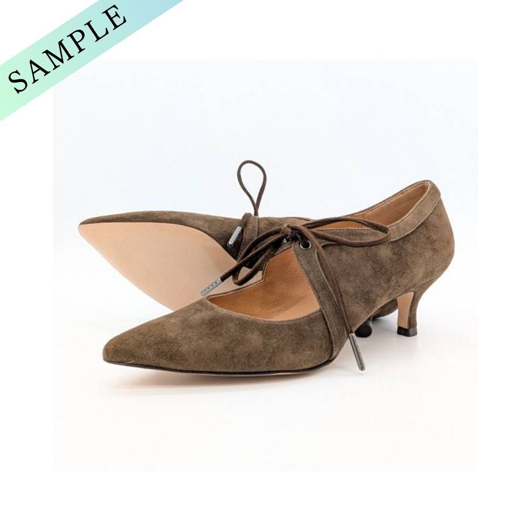 23.5cm/管理No.939/サンプル品(823032)/アルネ セヴン トゥエルヴ サーティ ALUNE SEVEN TWELVE THIRTY アンクル丈リボンスエードパンプス (ダークブラウンスエード)