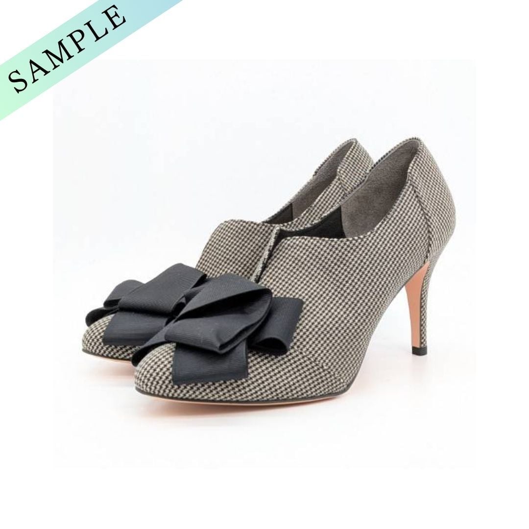 ラウンドトゥにグログランのビックリボンが映え、大人かわいいスタイルにぴったりの1足です。