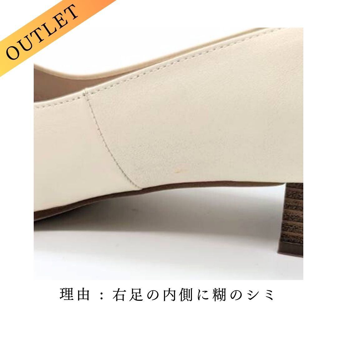 Outlet理由:①全体的に色焼けによる変色(現品と比べると変色が見られますが、左右の色が大きく違うことはありません。現品は白っぽいアイボリーですが、アウトレット品はクリーム色に少し変色 ②右足の内側に小さな糊のシミ(※4〜7枚目参照)