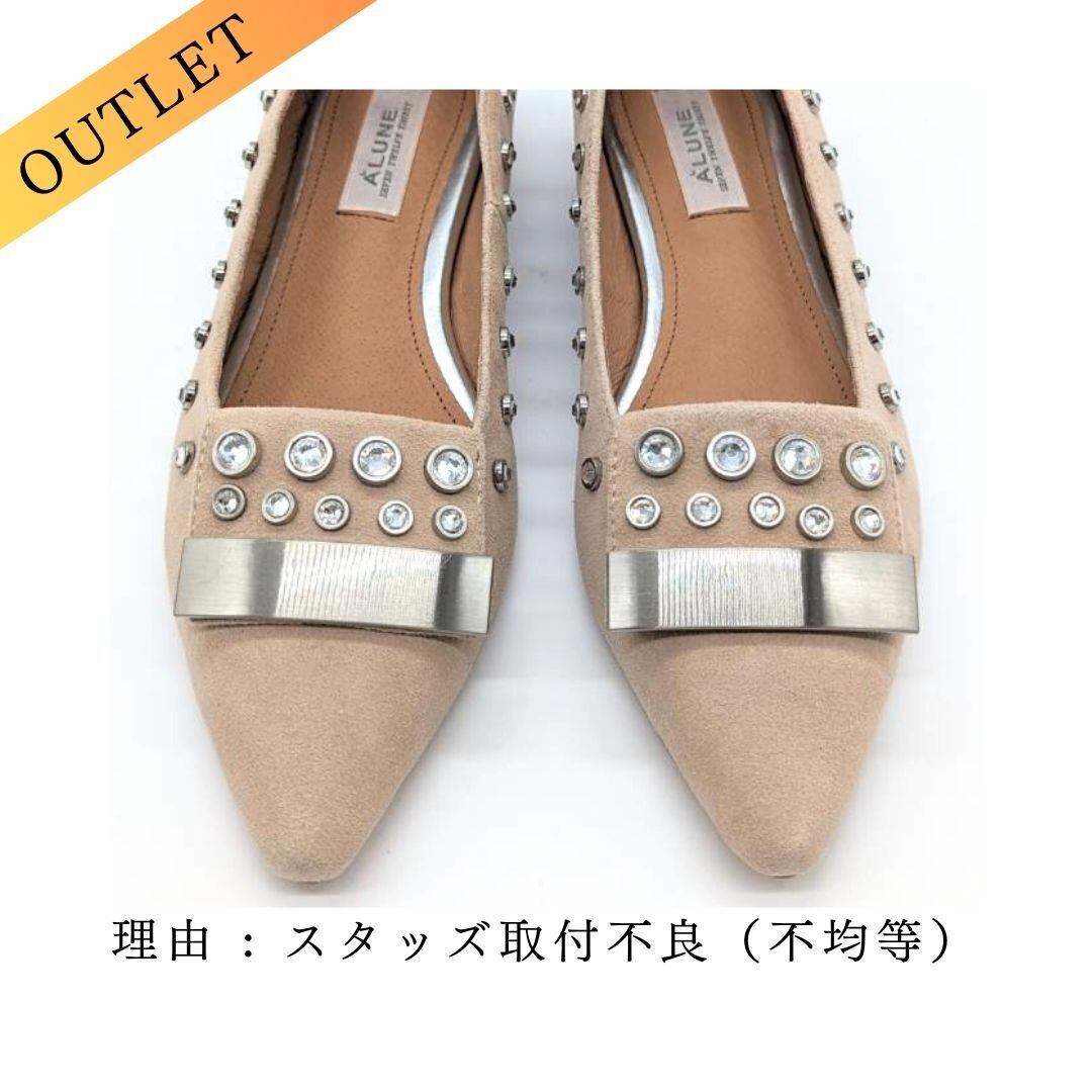 23.5cm/管理No.312/ALUNE SEVEN TWELVE THIRTY ビジュースタッズポインテッドパンプス (ベージュスエード)/869003