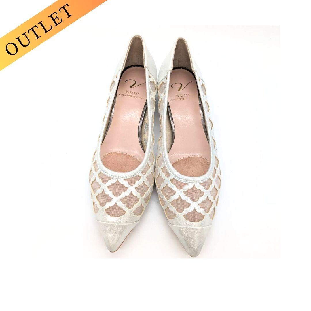 23.0cm/管理No.492 / V-SEVENTWELVETHIRTYレーザーカットポインテッドパンプス (シルバー)/353035