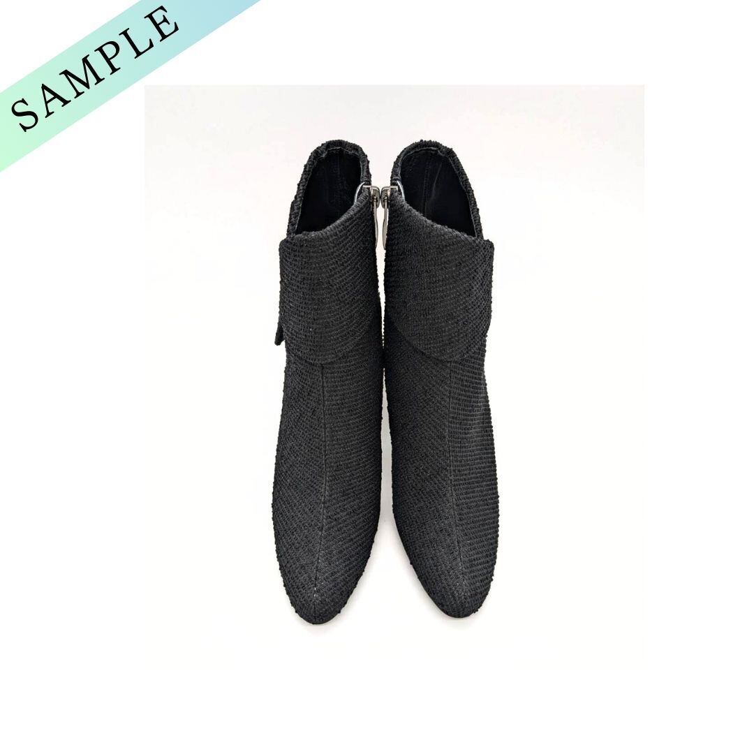 23.5cm/管理No.591/サンプル品(101334)/SEVEN TWELVE THIRTY/セヴン トゥエルヴ サーティ LovelyWalk リボンファブリックショートブーツ (ブラック)